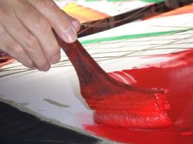 本会は九州染色業連合会と称し、古くは旗指物に施され、着物染めの‟友禅染め”に対し、暖簾(のれん)・ハッピ・社寺幕・幟等に『印(しるし)・文字・絵柄』などを染抜く‟印入れ(しるしいれ)染物”または‟印染(しるしぞめ)”として発展してきた伝統産業の業種で、九州および、その近隣地区を中心として工場 ・営業所を有する者を以って組織し、会員相互の技術と業績の向上と親睦を図り業界の振興発展を目的とし昭和48年1月に設立されたかいでございます。